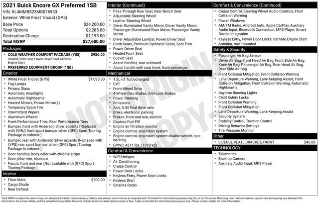- Vehicle Name: Buick Encore GX