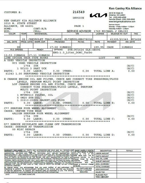 Contact Ken Ganley Kia Alliance for your Kia automotive needs! Search our Used Kia inventory and contact our internet sales department for current specials or to schedule a test drive. Located in Alliance, OH, our internet sales team provides excellent savings to customers in Alliance, Akron, Canton, and Streetsboro areas. Contact our dealership online for an internet quote.Contact Ken Ganley Kia Alliance about this Used 2022 Kia TrailBlazer ACTIV - #PC1626, VIN# KL79MVSL1NB078036