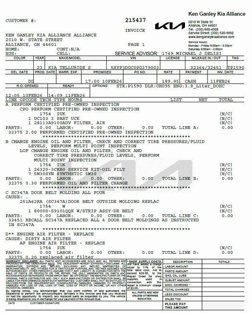 Contact Ken Ganley Kia Alliance for your Kia automotive needs! Search our Used Kia inventory and contact our internet sales department for current specials or to schedule a test drive. Located in Alliance, OH, our internet sales team provides excellent savings to customers in Alliance, Akron, Canton, and Streetsboro areas. Contact our dealership online for an internet quote.Contact Ken Ganley Kia Alliance about this Used 2023 Kia Telluride EX X-Line - #P1590, VIN# 5XYP3DGC0PG379003