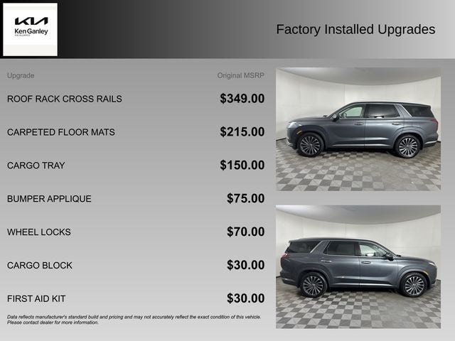 Contact Ken Ganley Kia Alliance for your Kia automotive needs! Search our Used Kia inventory and contact our internet sales department for current specials or to schedule a test drive. Located in Alliance, OH, our internet sales team provides excellent savings to customers in Alliance, Akron, Canton, and Streetsboro areas. Contact our dealership online for an internet quote.Contact Ken Ganley Kia Alliance about this Used 2024 Kia Palisade Calligraphy - #P1610, VIN# KM8R7DGE3RU793386
